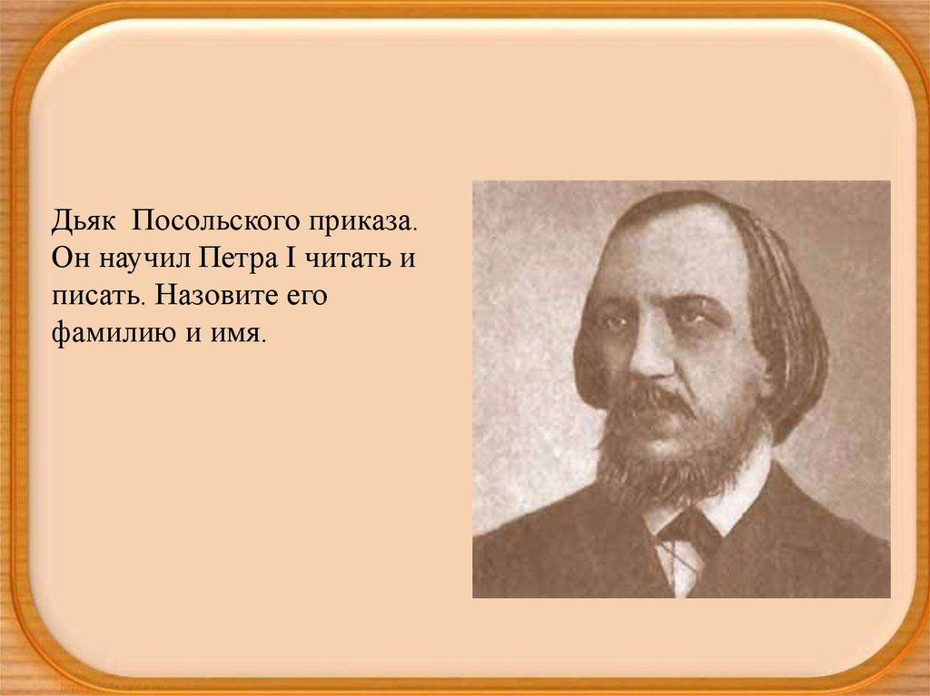 Дьяк Посольского приказа.Он научил Петра I читать и