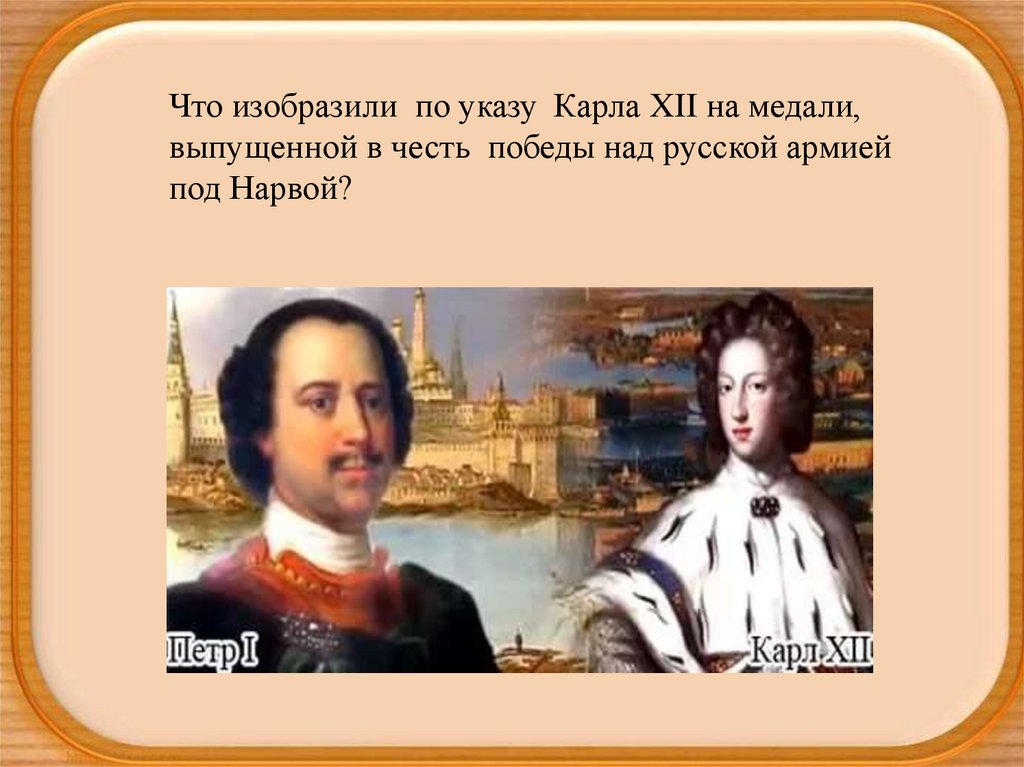 Что изобразили по указу Карла XII на медали,выпущенной в честь победы над русской армией