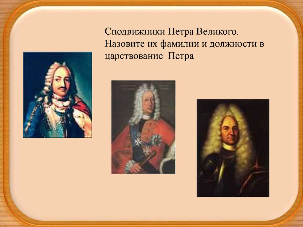 Сподвижники Петра Великого.Назовите их фамилии и должности в