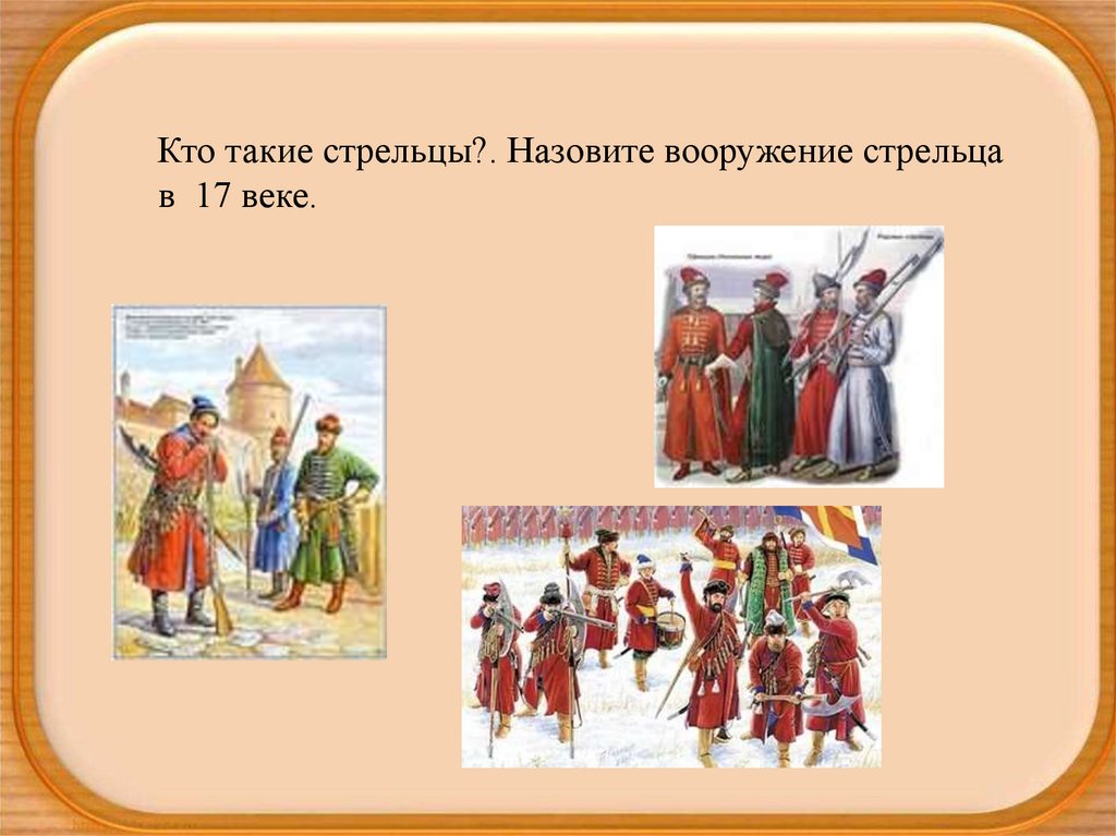 Кто такие стрельцы?. Назовите вооружение стрельцав 17 веке.