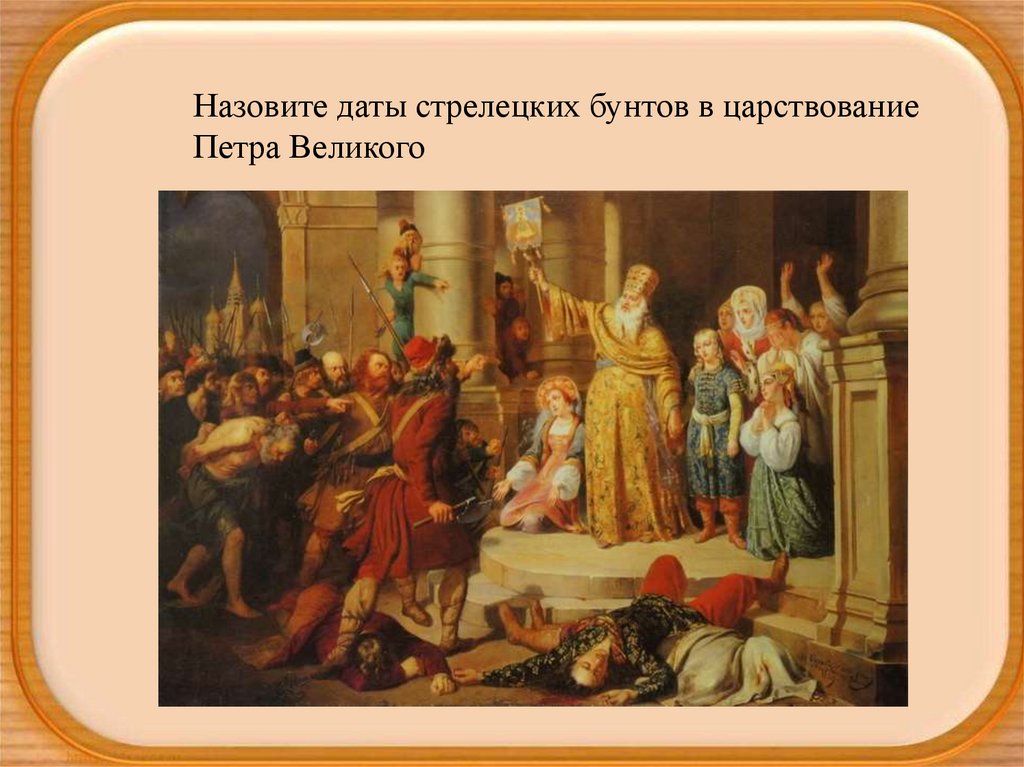 Назовите даты стрелецких бунтов в царствованиеПетра Великого