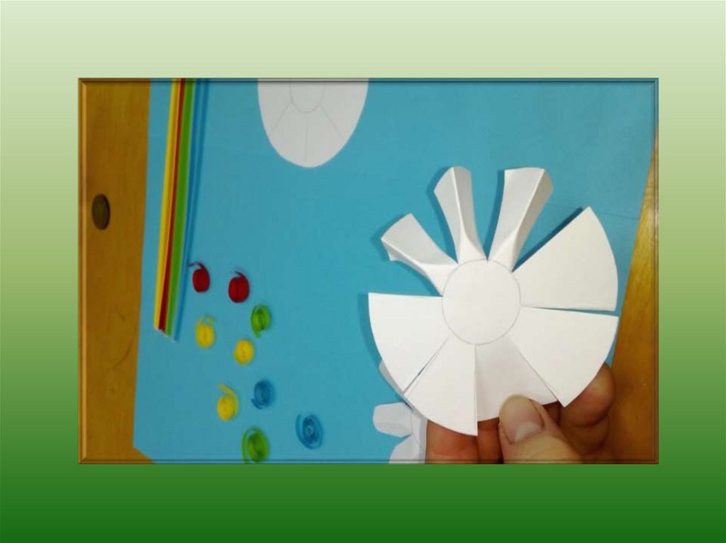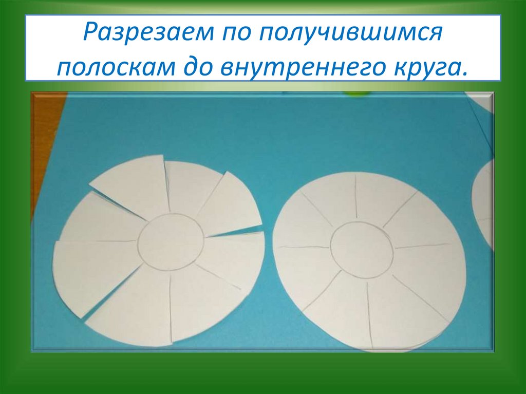 Разрезаем по получившимсяполоскам до внутреннего круга.