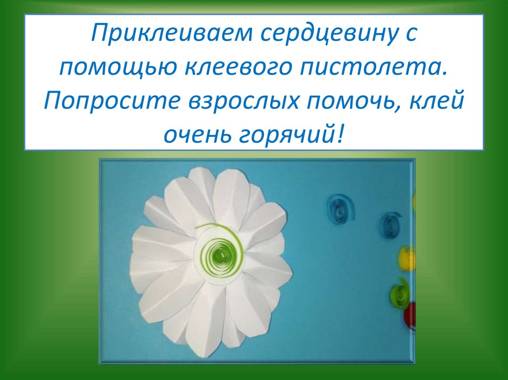 Приклеиваем сердцевину спомощью клеевого пистолета.