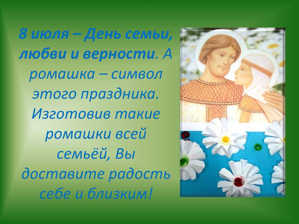 8 июля – День семьи,любви и верности. А
