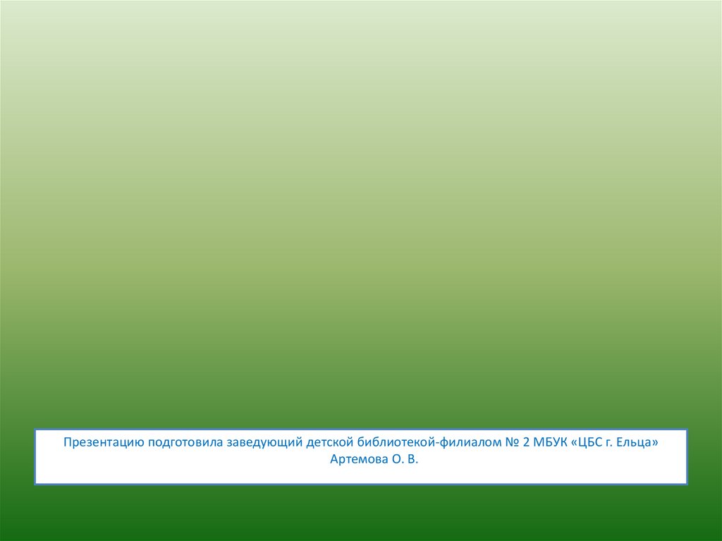 Презентацию подготовила заведующий детской библиотекой-филиалом № 2 МБУК «ЦБС г. Ельца»Артемова О. В.