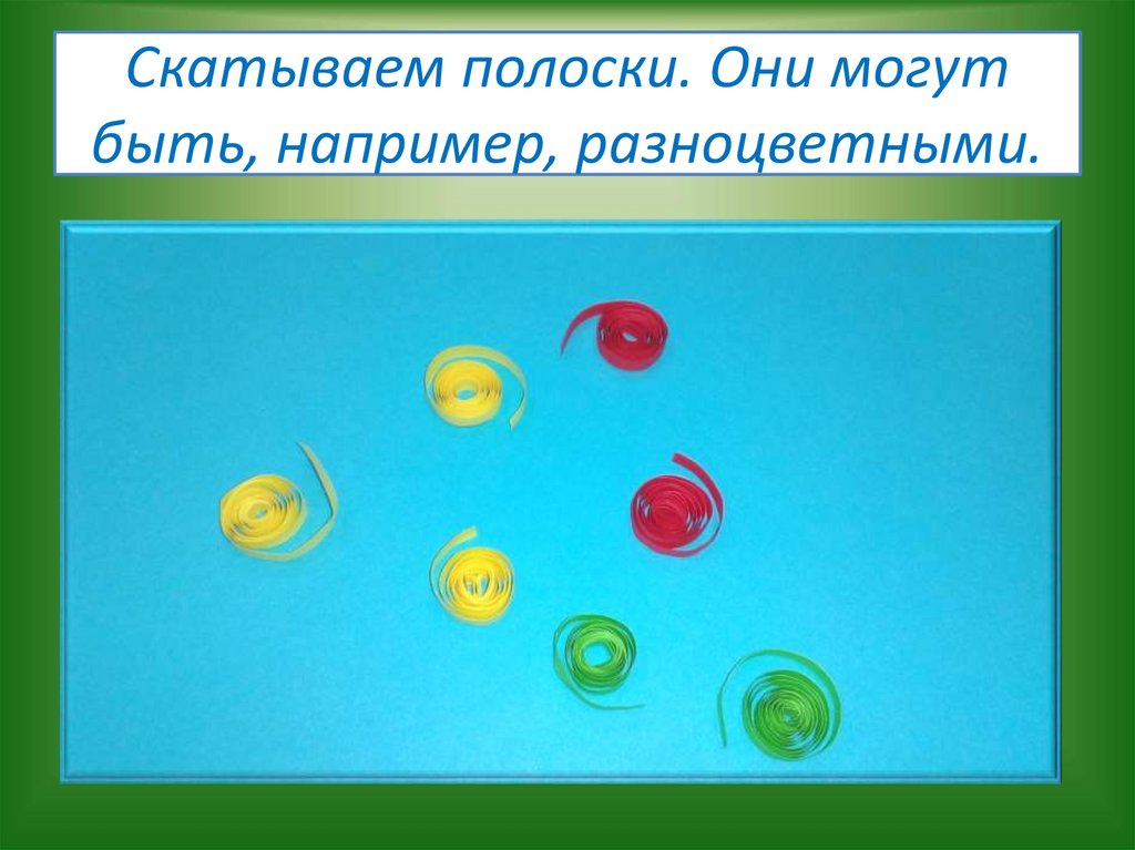 Скатываем полоски. Они могутбыть, например, разноцветными.