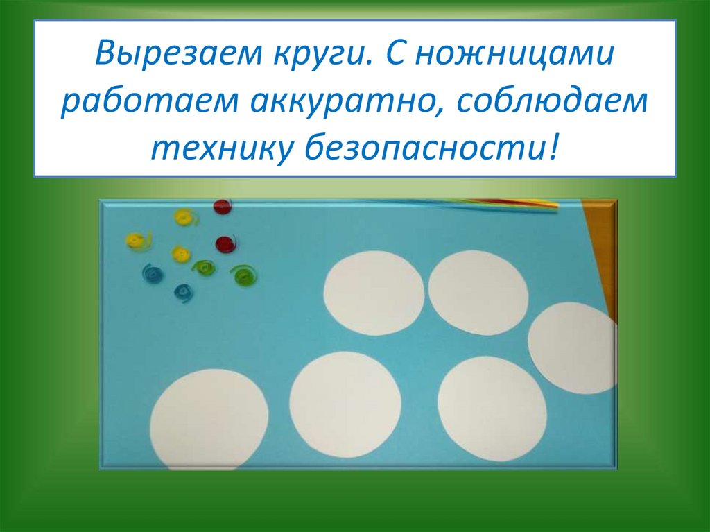 Вырезаем круги. С ножницамиработаем аккуратно, соблюдаем