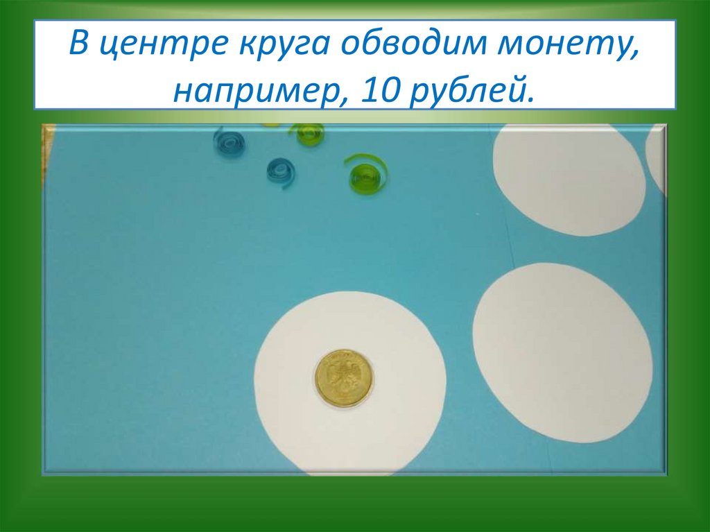 В центре круга обводим монету,например, 10 рублей.