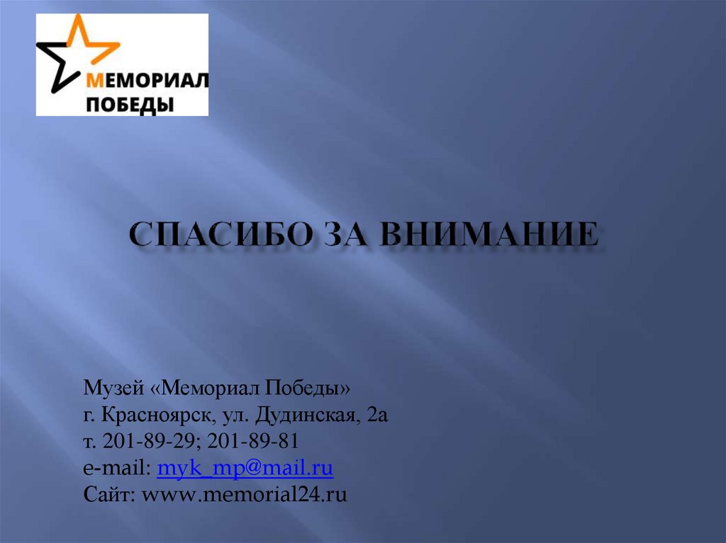 Музей «Мемориал Победы»г. Красноярск, ул. Дудинская, 2а