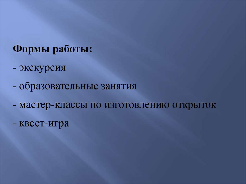Формы работы:- экскурсия