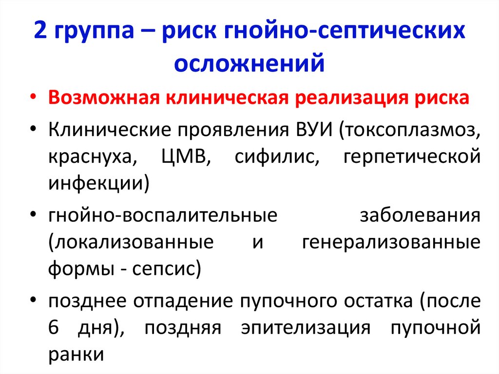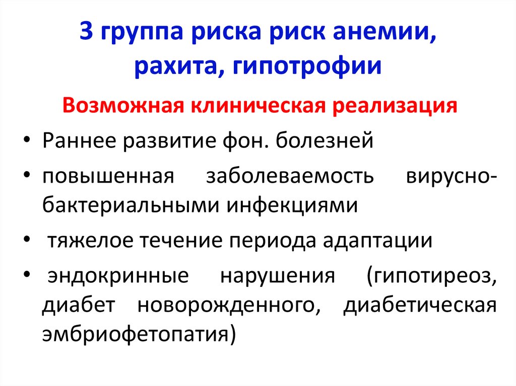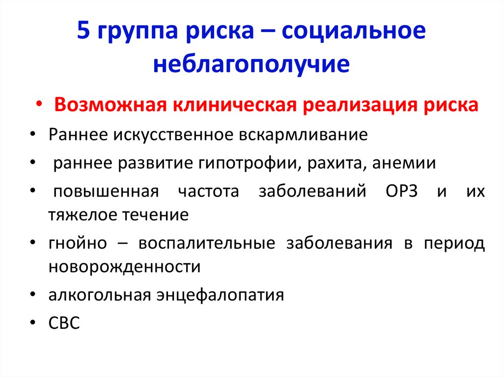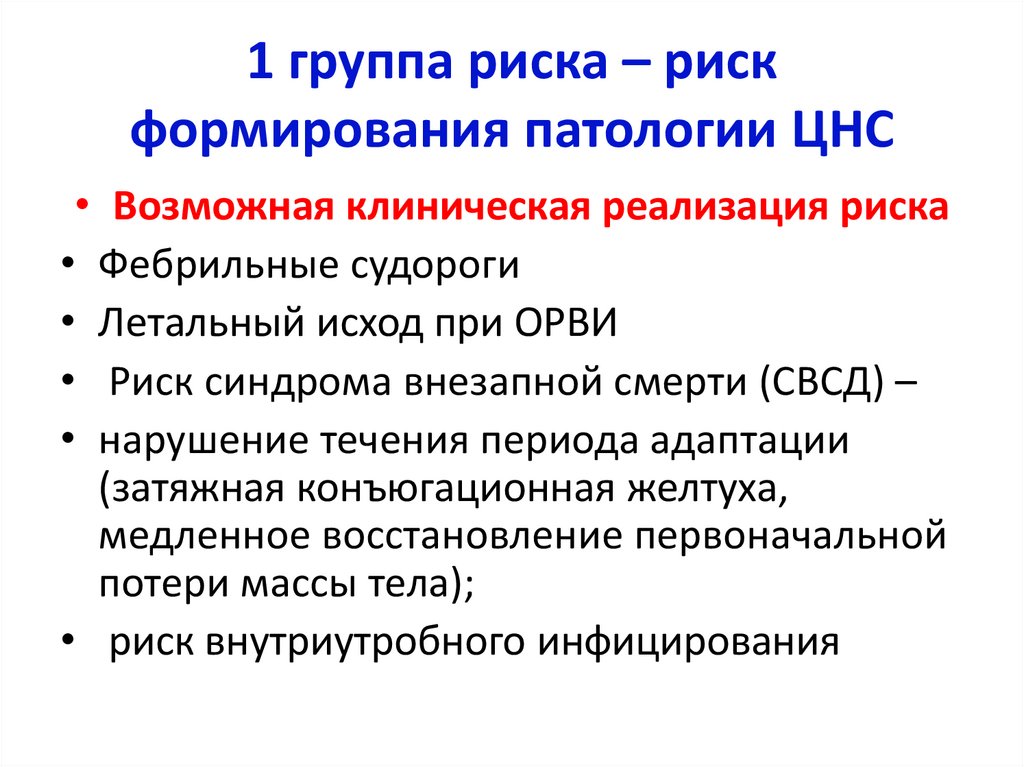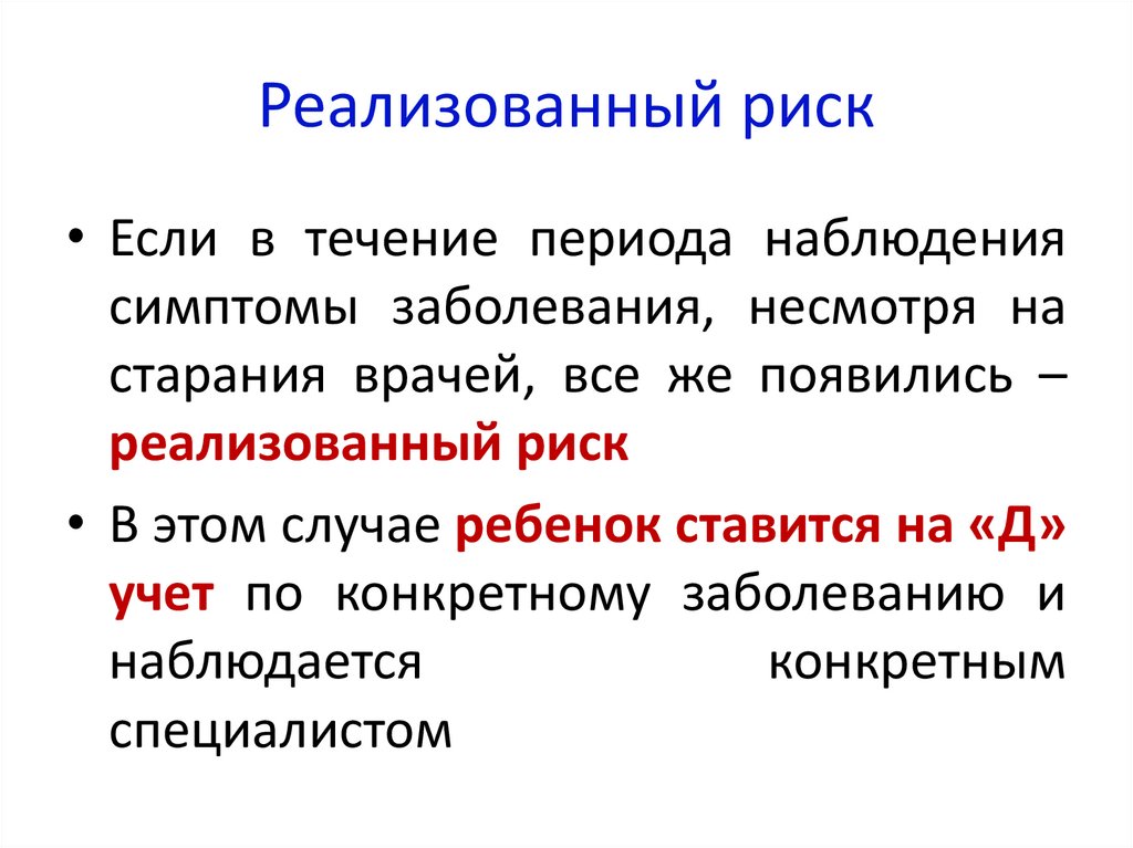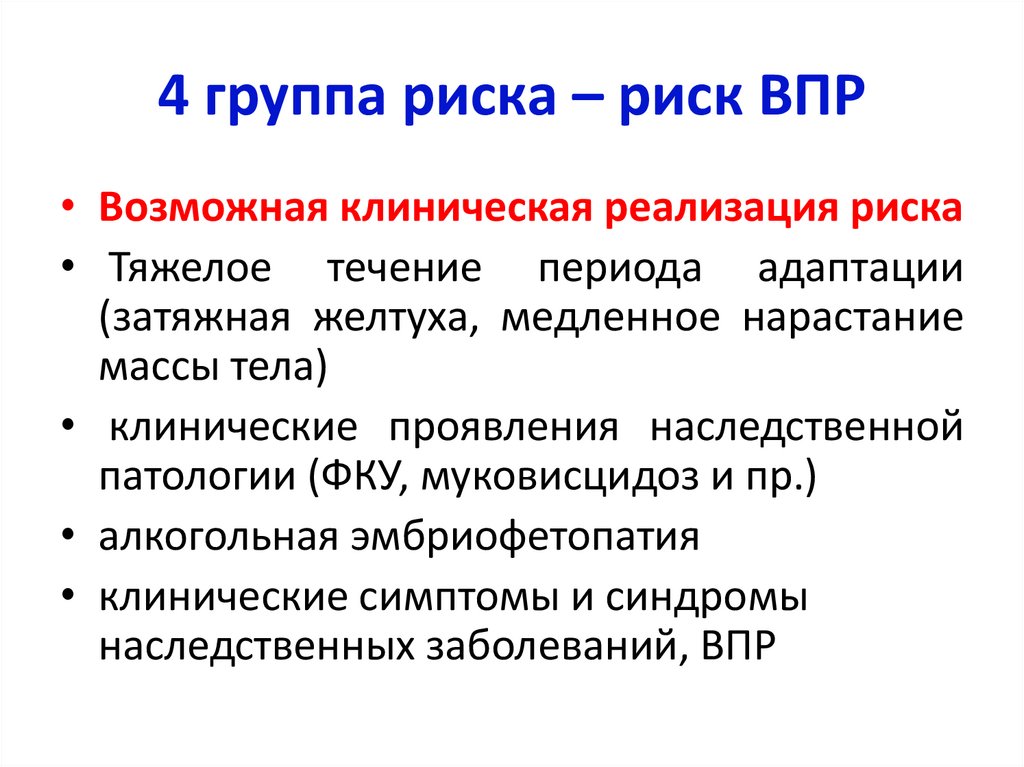 4 группа риска – риск ВПР• Возможная клиническая реализация риска