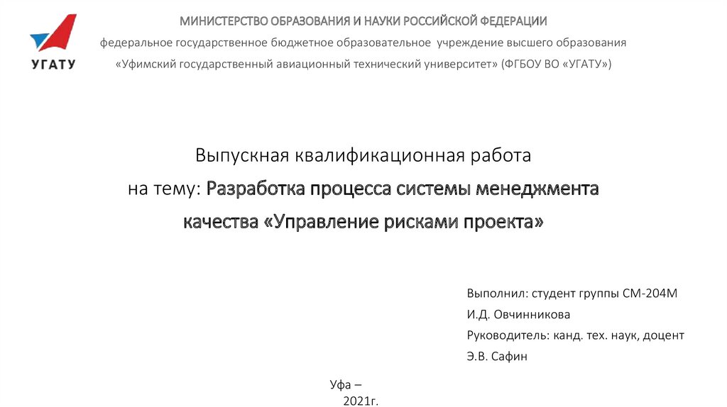 «Уфимский государственный авиационный технический университет» (ФГБОУ ВО «УГАТУ»)