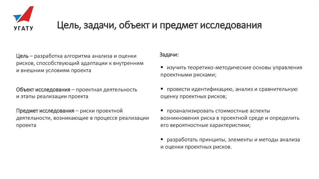 Цель, задачи, объект и предмет исследованияЦель – разработка алгоритма анализа и оценки