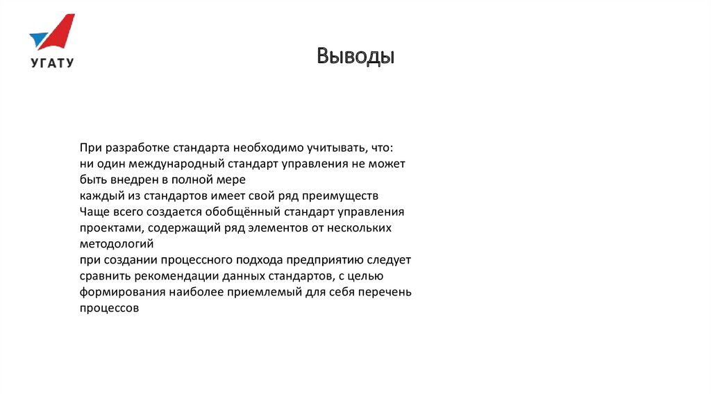 ВыводыПри разработке стандарта необходимо учитывать, что: