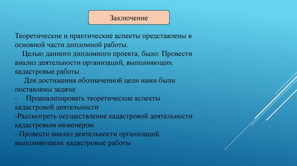 Цель работы : провести анализ деятельности организаций выполняющихкадастровые работы