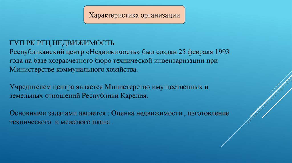 Характеристика организацииГУП РК РГЦ НЕДВИЖИМОСТЬ