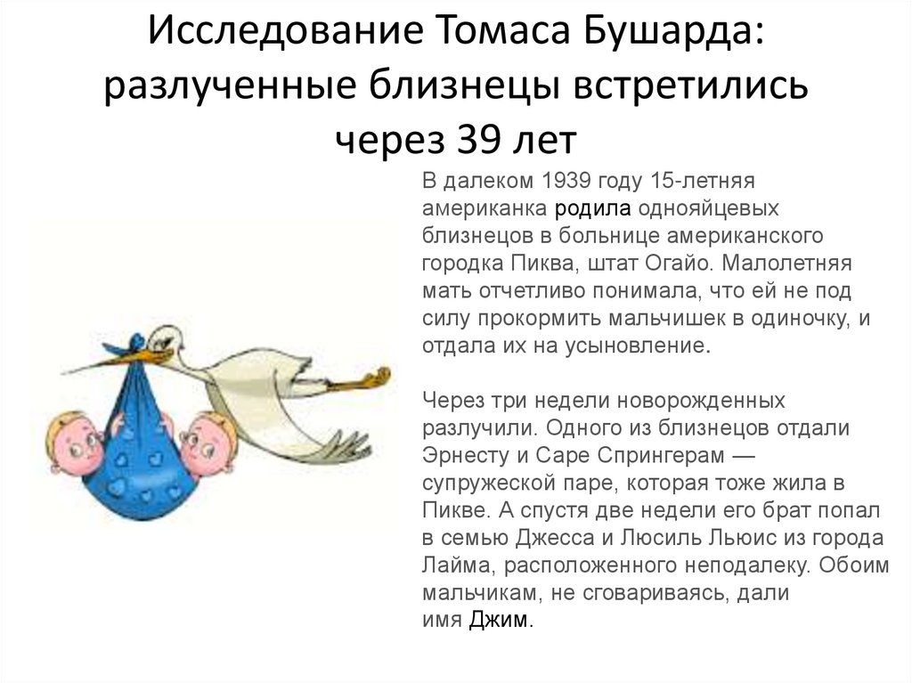 Исследование Томаса Бушарда:разлученные близнецы встретились