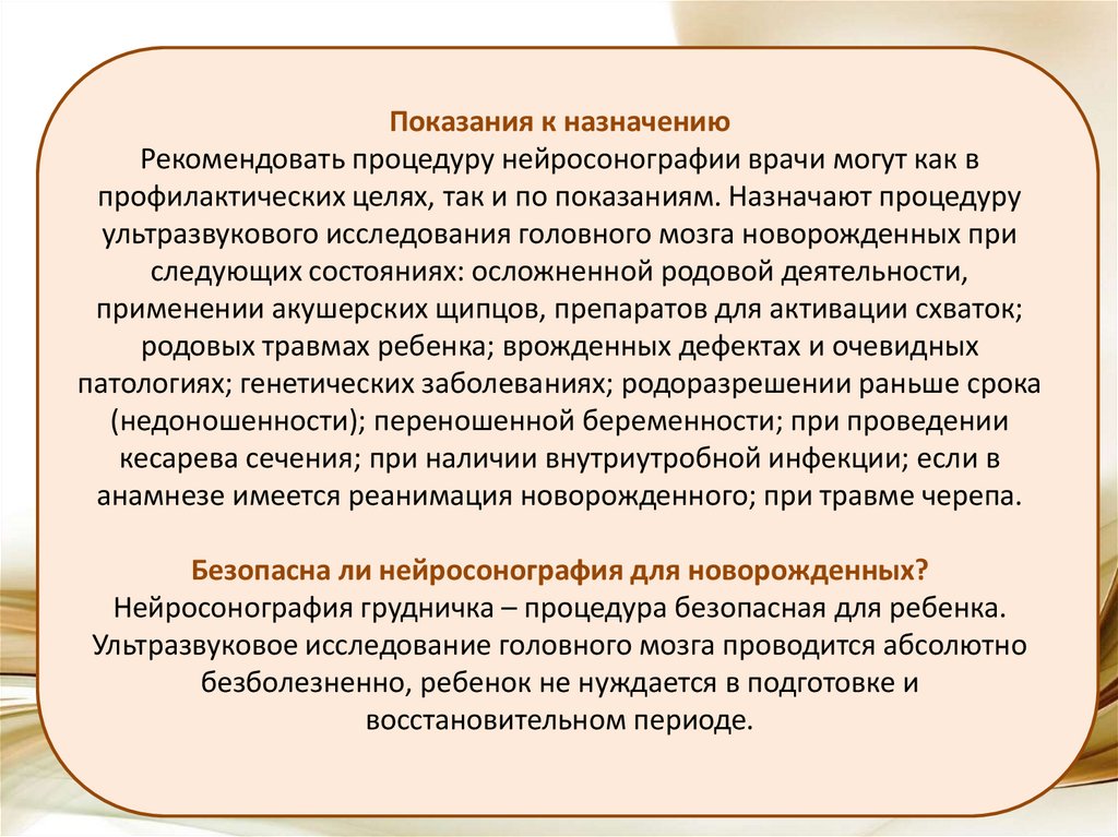 Показания к назначениюРекомендовать процедуру нейросонографии врачи могут как в