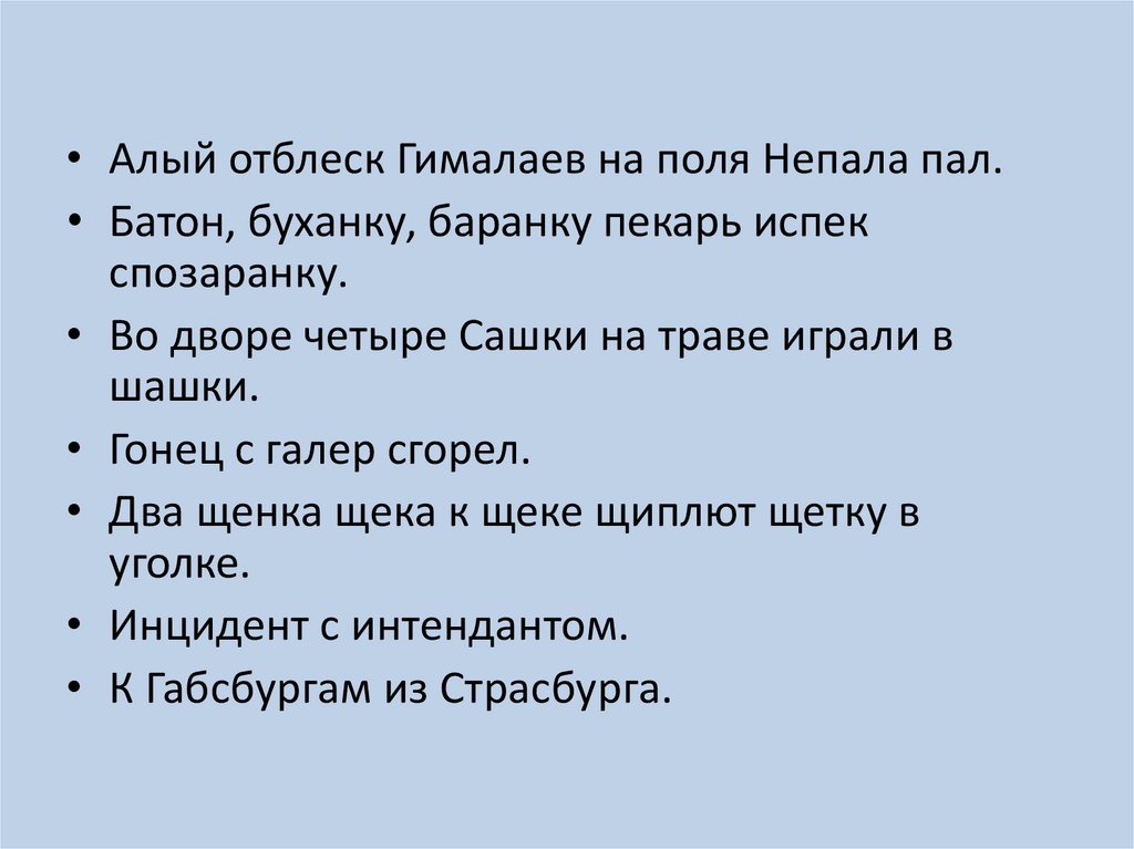 • Алый отблеск Гималаев на поля Непала пал.• Батон, буханку, баранку пекарь испек