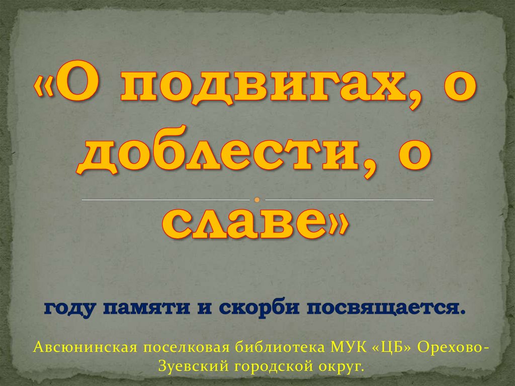Авсюнинская поселковая библиотека МУК «ЦБ» ОреховоЗуевский городской округ.