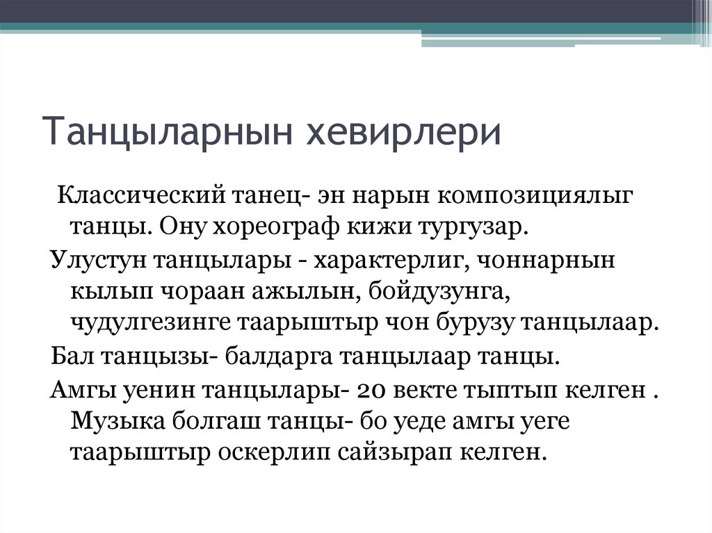 Танцыларнын хевирлериКлассический танец- эн нарын композициялыг