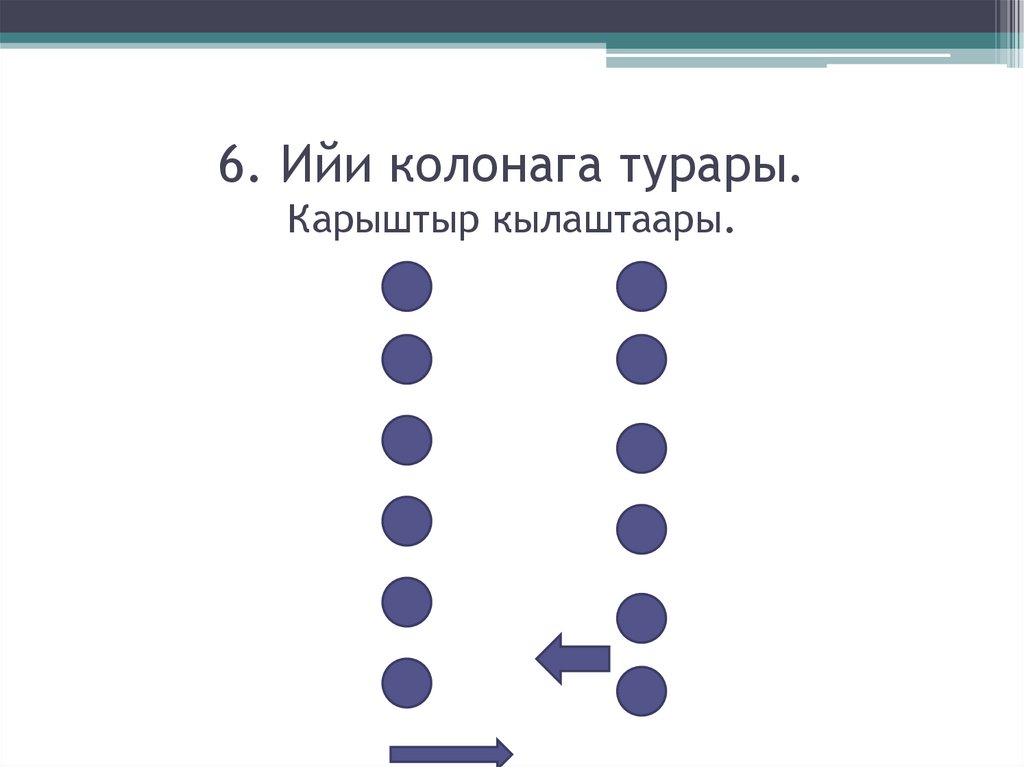 6. Ийи колонага турары.Карыштыр кылаштаары.