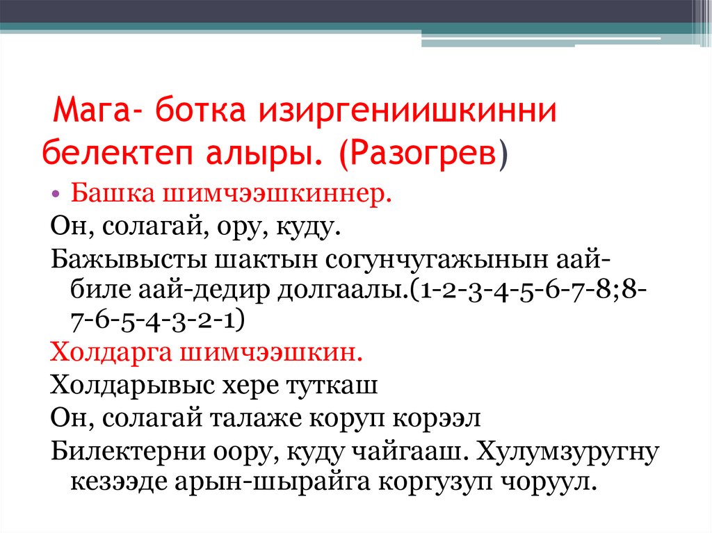 Мага- ботка изиргениишкиннибелектеп алыры. (Разогрев)