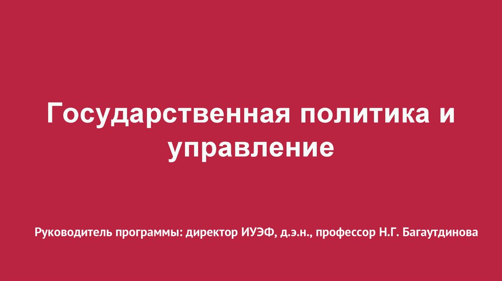 Руководитель программы: директор ИУЭФ, д.э.н., профессор Н.Г. Багаутдинова