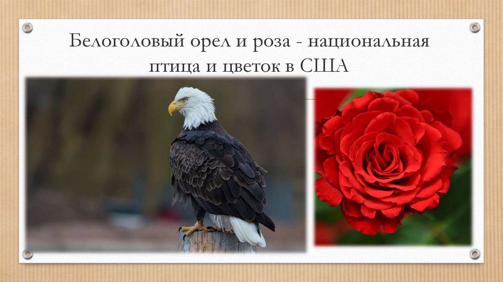 Белоголовый орел и роза - национальнаяптица и цветок в США