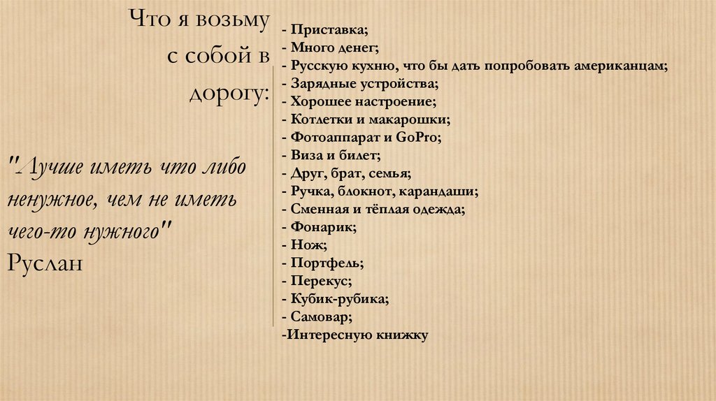 Что я возьмус собой в