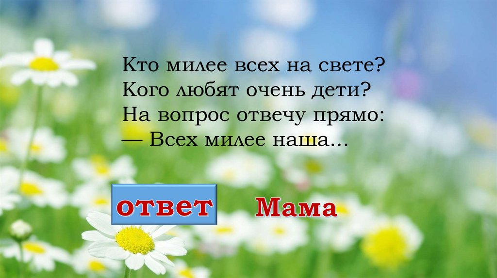 Кто милее всех на свете?Кого любят очень дети?
