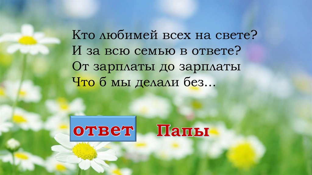 Кто любимей всех на свете?И за всю семью в ответе?