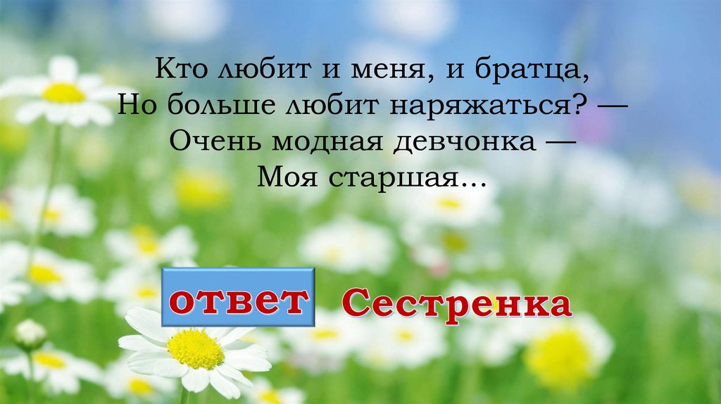 Кто любит и меня, и братца,Но больше любит наряжаться? —