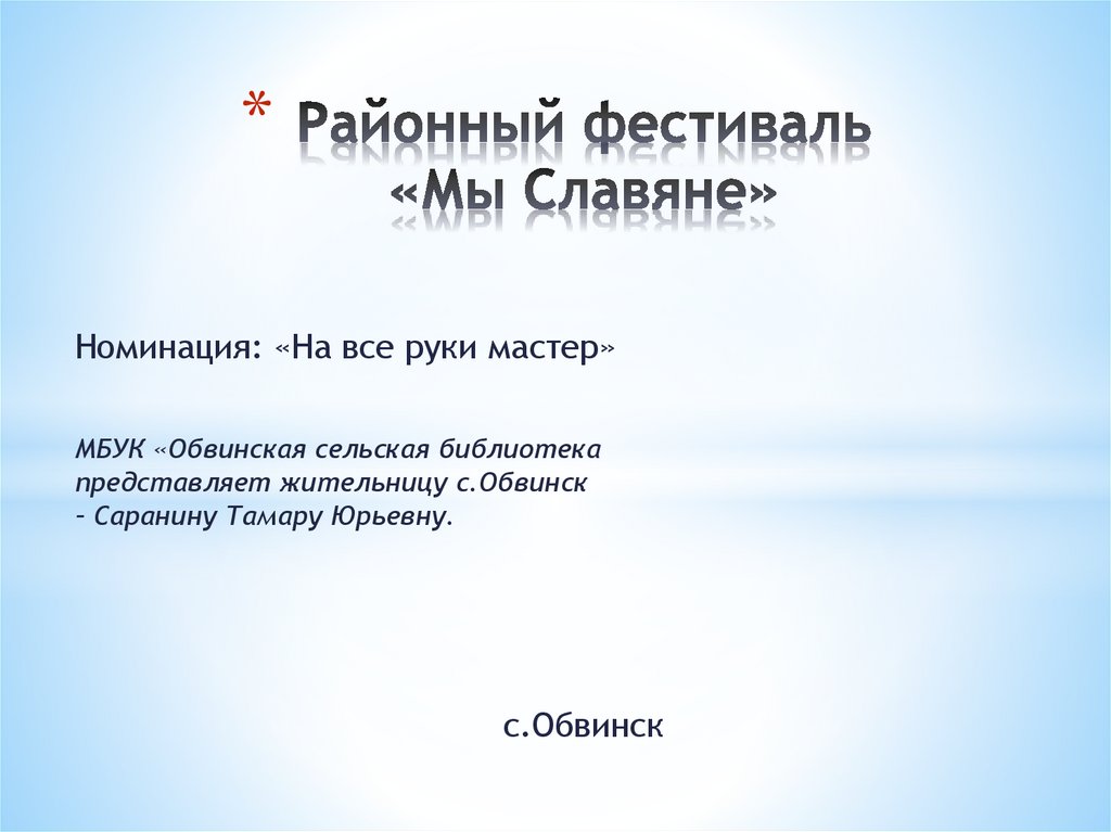 Номинация: «На все руки мастер». Работы Сараниной Т.Ю. Обвинск