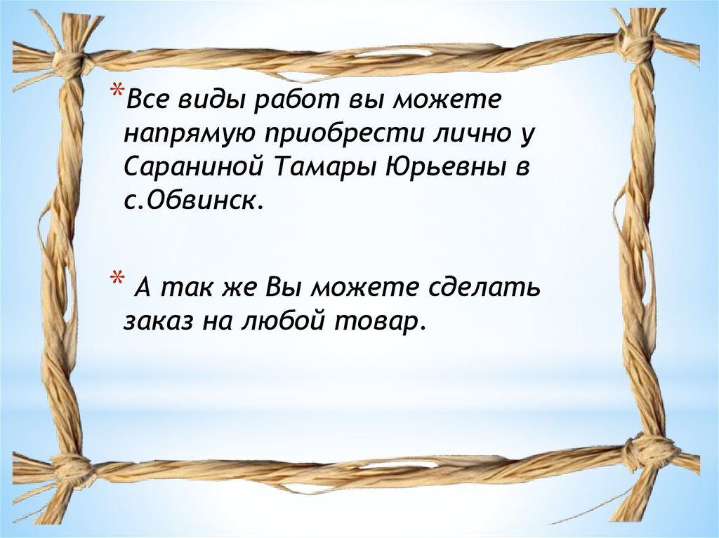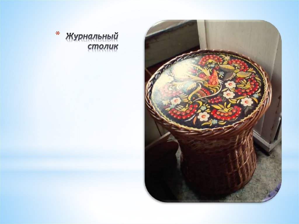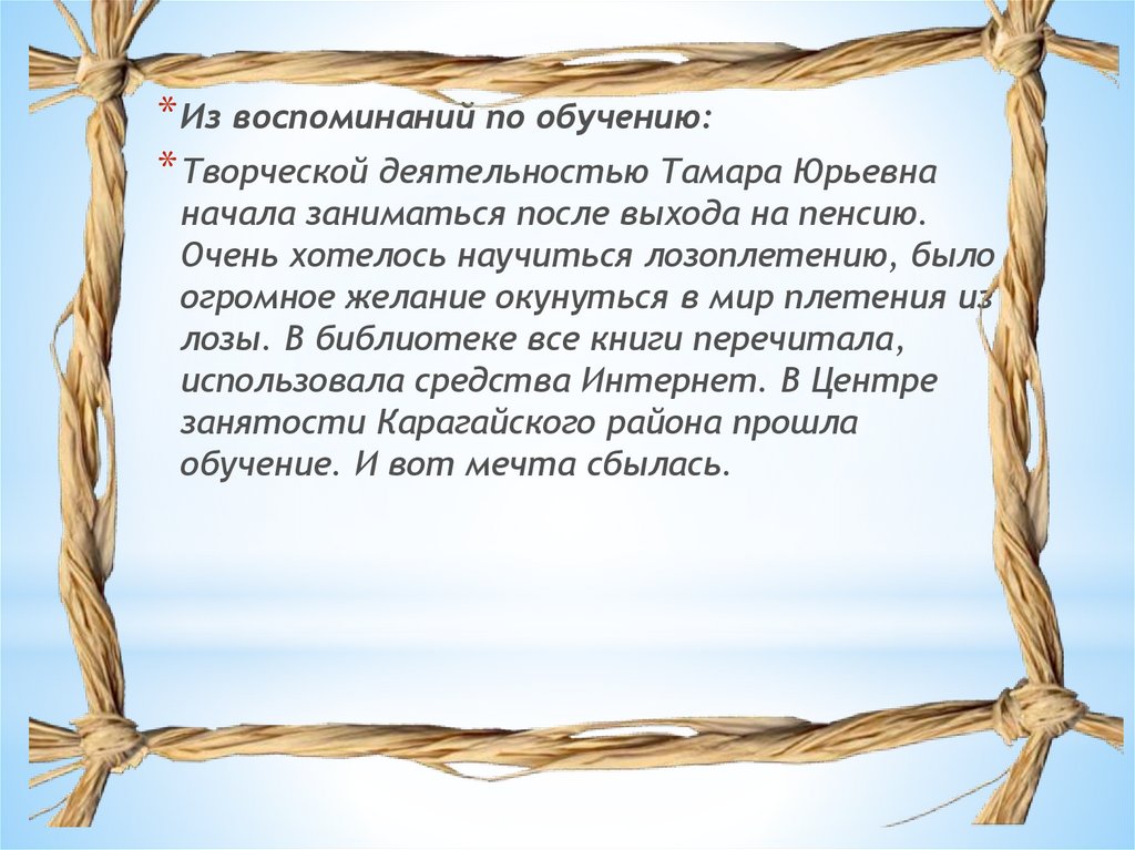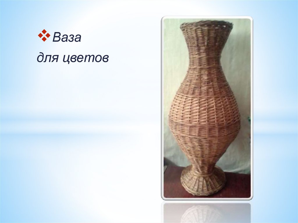 * Со слов Тамары Юрьевны: « Плетение из лозы – этоискусство. Нужно обладать огромным терпением и