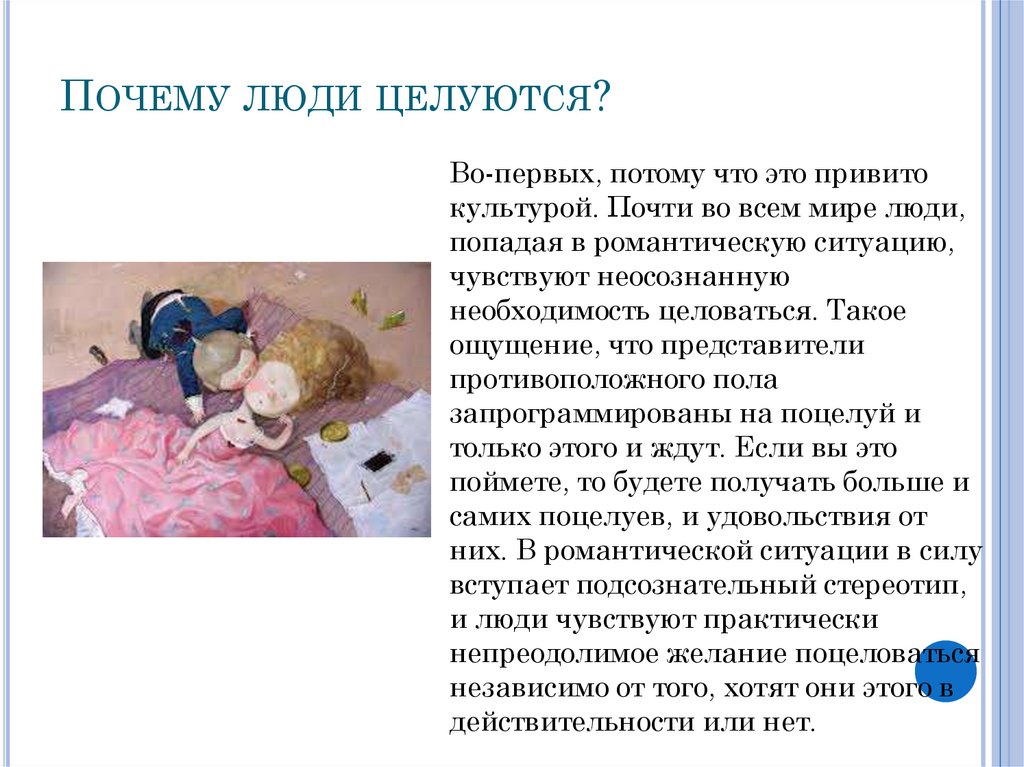 ПОЧЕМУ ЛЮДИ ЦЕЛУЮТСЯ?Во-первых, потому что это привито