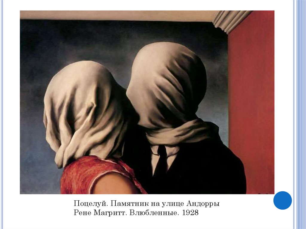 Поцелуй. Памятник на улице АндоррыРене Магритт. Влюбленные. 1928