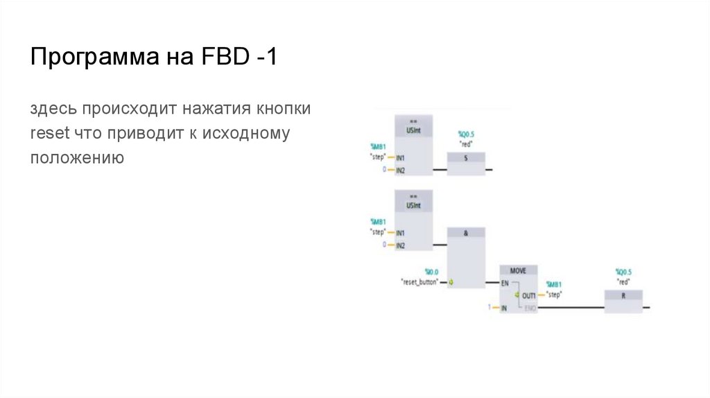 Программа на FBD -3здесь происходит включению зеленой лампы ,что