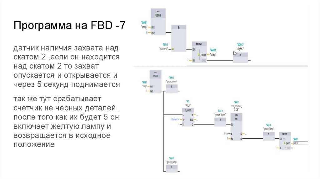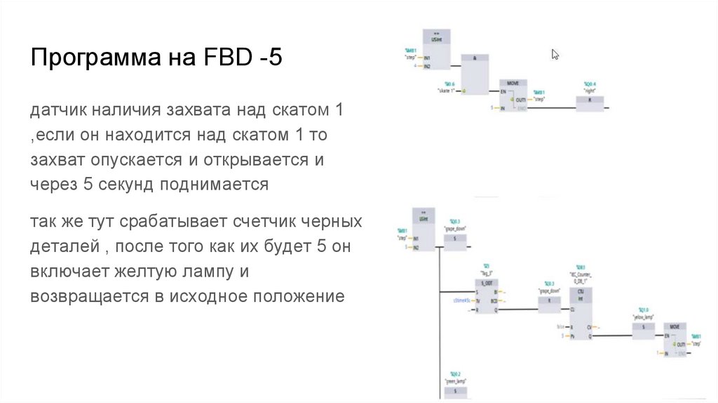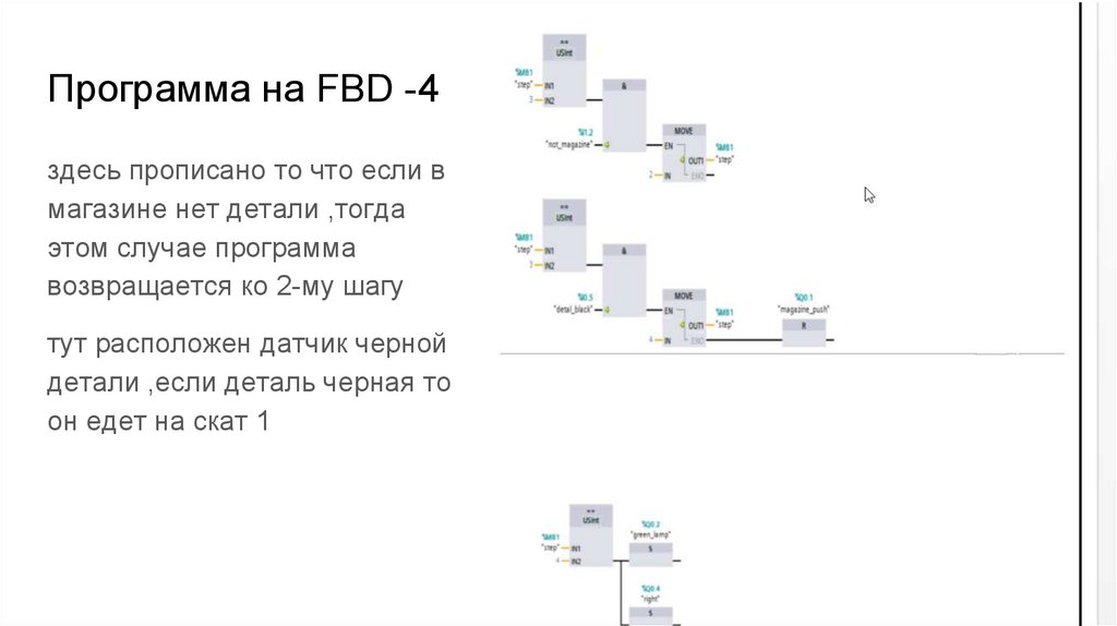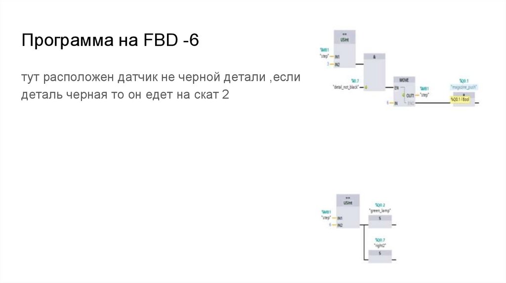 Программа на FBD -6тут расположен датчик не черной детали ,если
