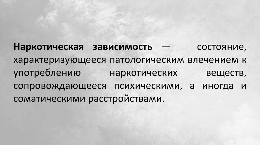 Наркотическая зависимость —состояние,