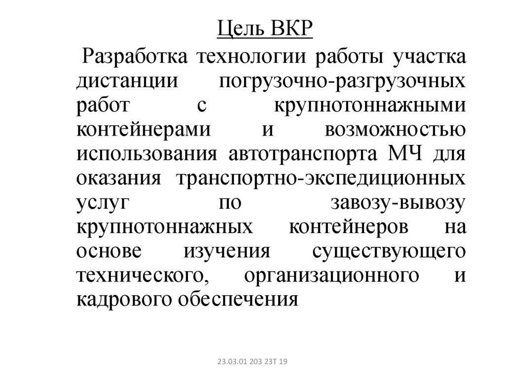 ВКР: Оптимизация работы участка дистанции погрузочноразгрузочных работ с крупнотоннажными контейнерами
