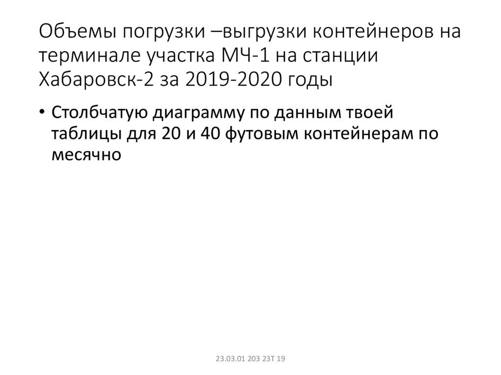 Объемы погрузки –выгрузки контейнеров натерминале участка МЧ-1 на станции