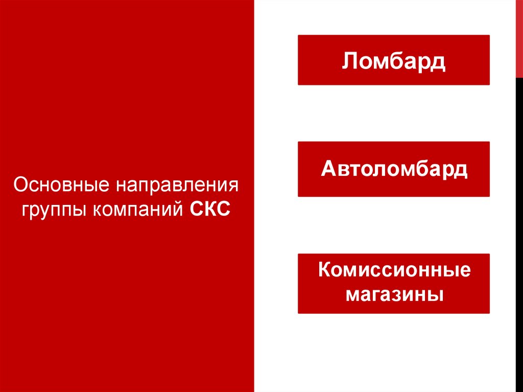 Группа компаний СКС – сеть ломбардов, комиссионных магазинов и автоломбардов
