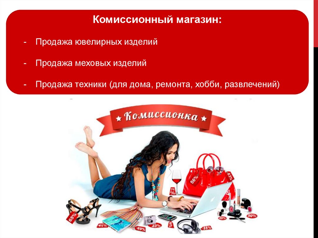 ювелирные изделия, меха, бытовая техника.