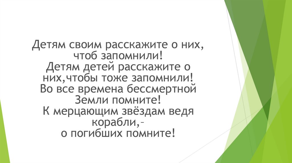 Люди! Покуда сердца стучатся,–помните!Какою ценой завоёвано счастье,–пожалуйста,