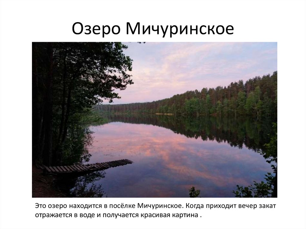 Озеро МичуринскоеЭто озеро находится в посёлке Мичуринское. Когда приходит вечер закат