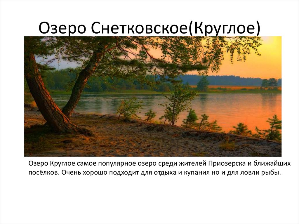 Озеро Снетковское(Круглое)Озеро Круглое самое популярное озеро среди жителей Приозерска и ближайших