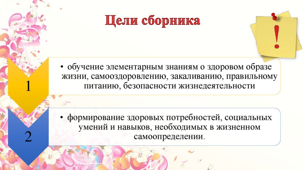 1• обучение элементарным знаниям о здоровом образе