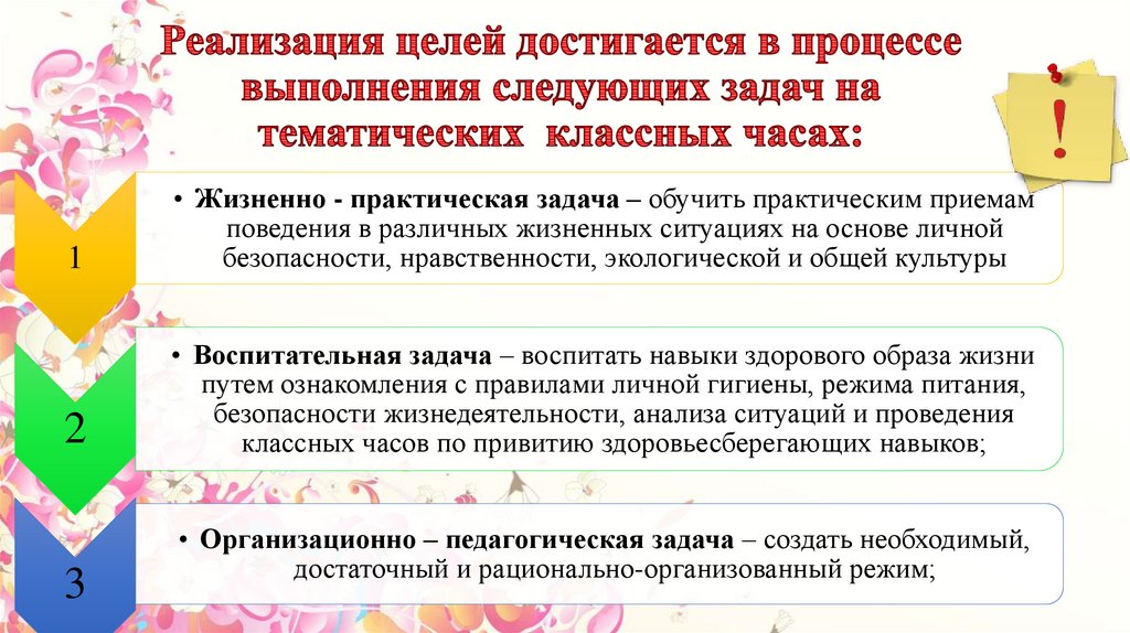 • Воспитательная задача – воспитать навыки здорового образа жизни