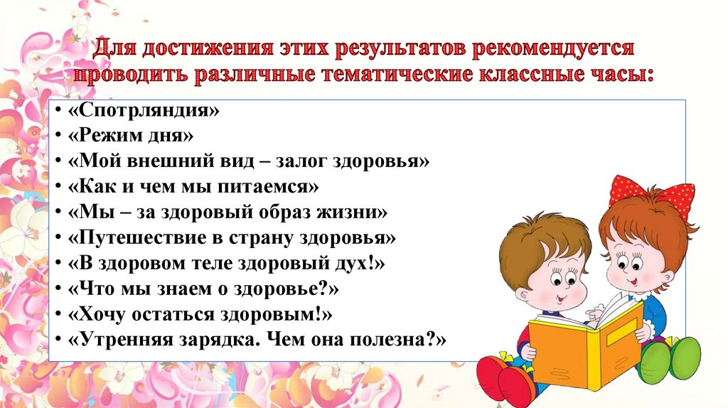 классных часов по привитию здоровьесберегающих навыков;